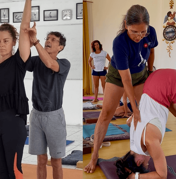Ao longo dos módulos, são trabalhados de forma estruturada os diferentes grupos de posturas — posturas em pé, posturas sentadas, extensões para frente, extensões para trás, torções e invertidas — construindo uma base sólida e integrada.